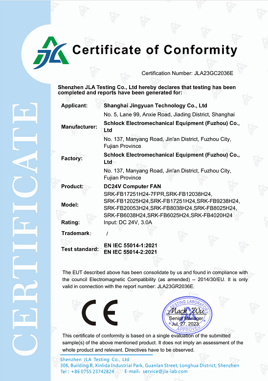 CE-EMC證書 DC24V Computer FAN