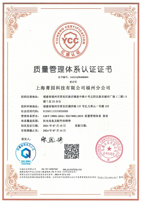 質(zhì)量管理體系認(rèn)證證書